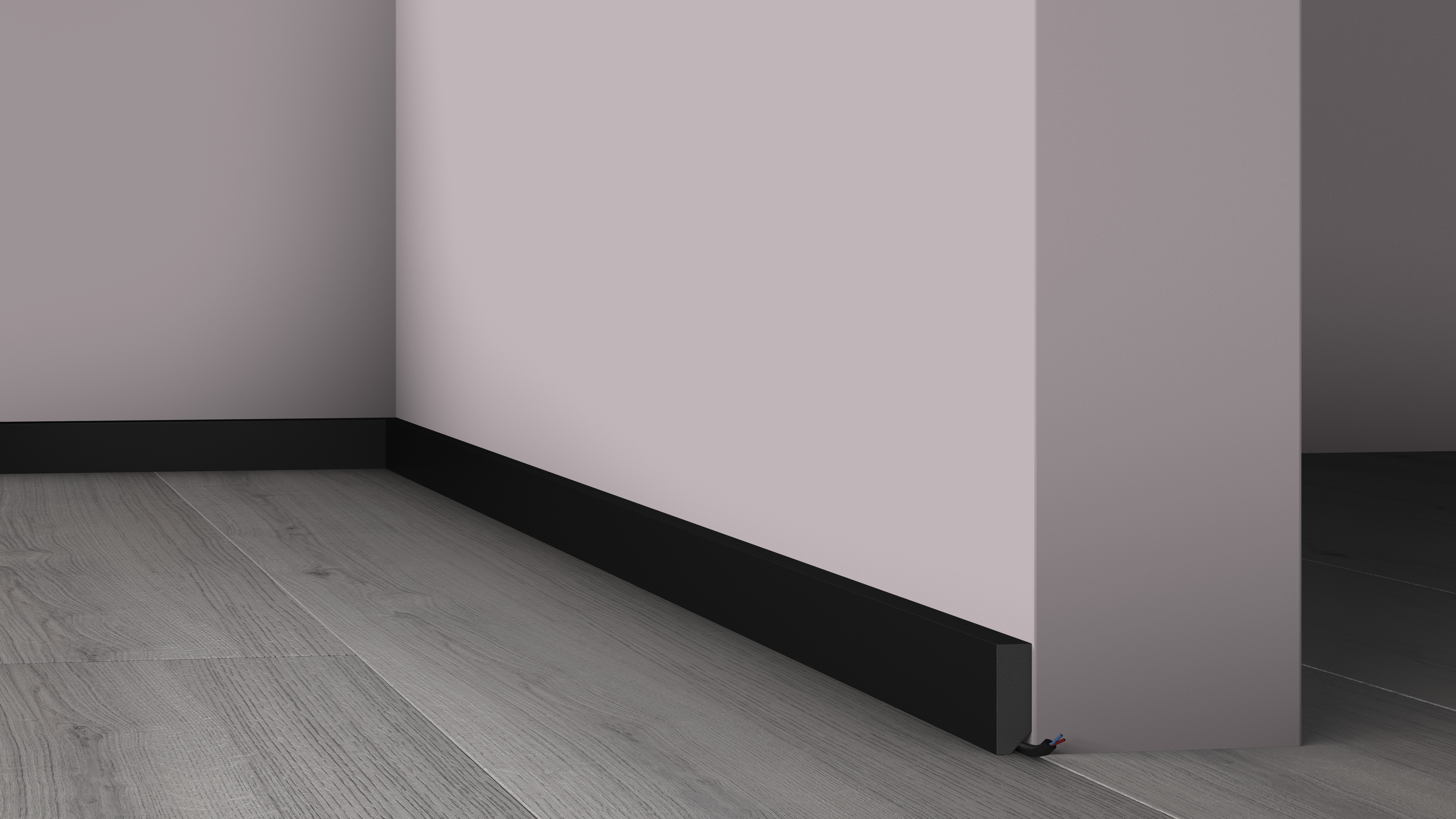 Bold, compact, and adaptable, the M38 BLACK noma®floor embodies the essence of minimalist design with a modern edge, highlighted by its deep black finish. Its clean, confident lines make it a perfect fit for any room and interior style. Whether creating striking contrasts against light walls or blending harmoniously with darker tones, the M38 BLACK adds a refined architectural touch. Made from high-density polystyrene, this skirting is black throughout for a seamless cut and finish, and offers excellent resistance to water and scratches. All BLACK skirtings combine durability with sleek design for a timeless result.