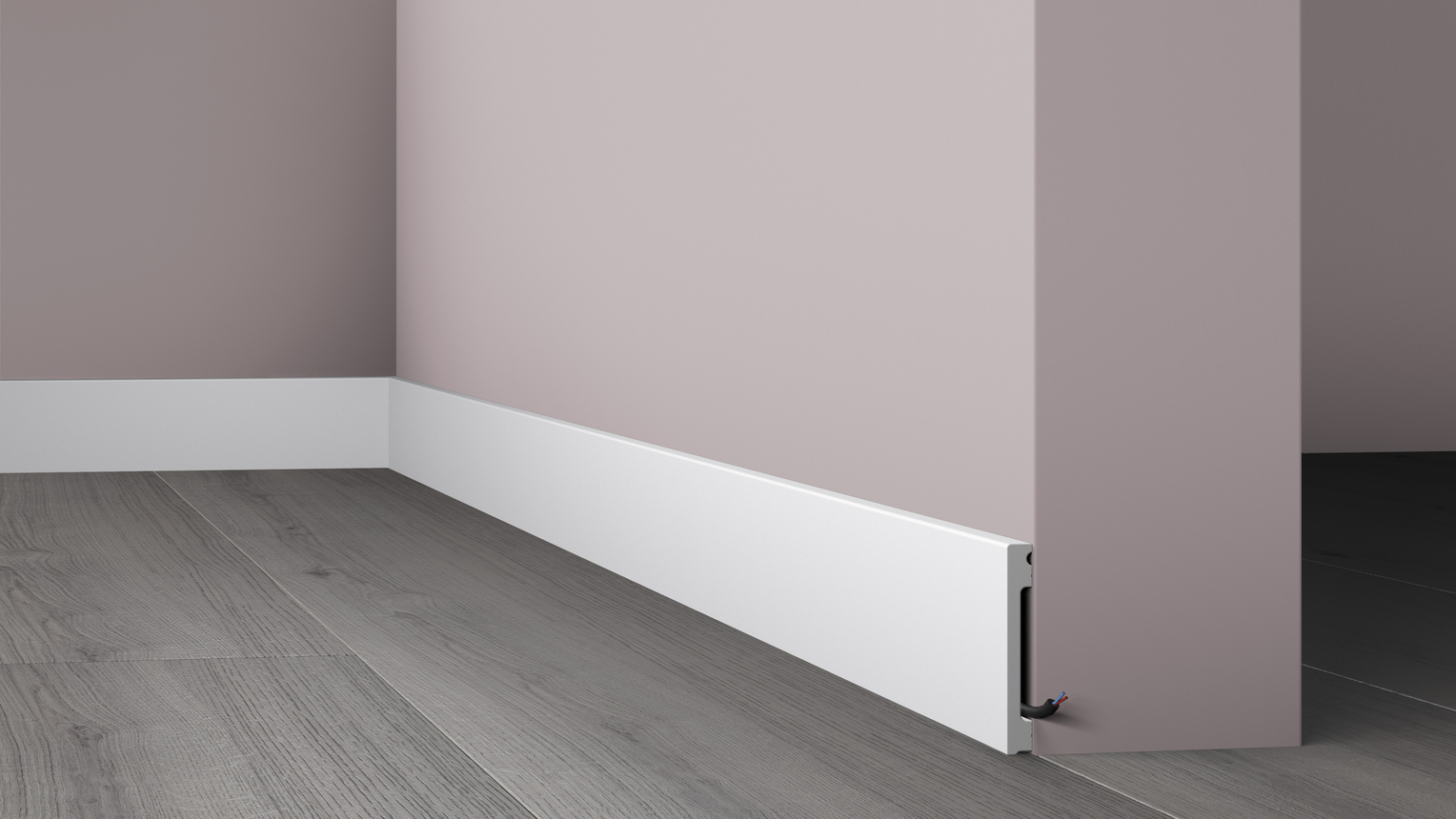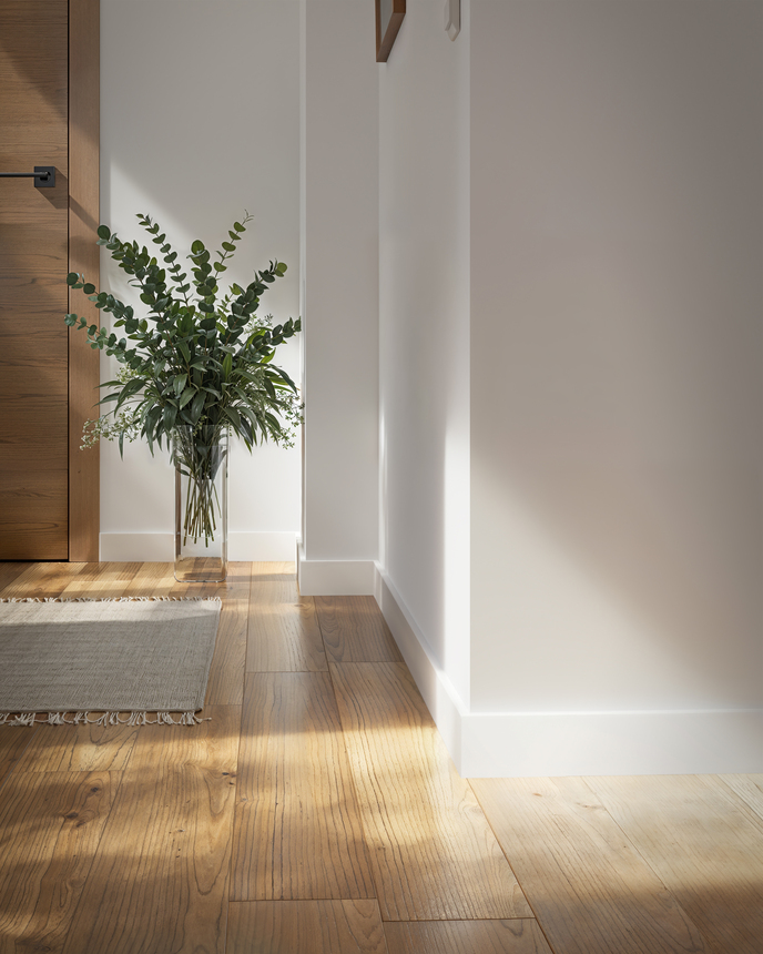 Timeless yet modern, the M80 noma®floor skirting adapts well to a range of interiors and floor coverings. This lightweight model is hollowed out to conceal cables and hide minor imperfections. Made from shock-resistant, 100% waterproof polystyrene material, this simple, minimalist piece will suit a range of uses. Pairs with the M38, M58, M100 and M120. Installation is seamless with our ADEFIX® adhesive.